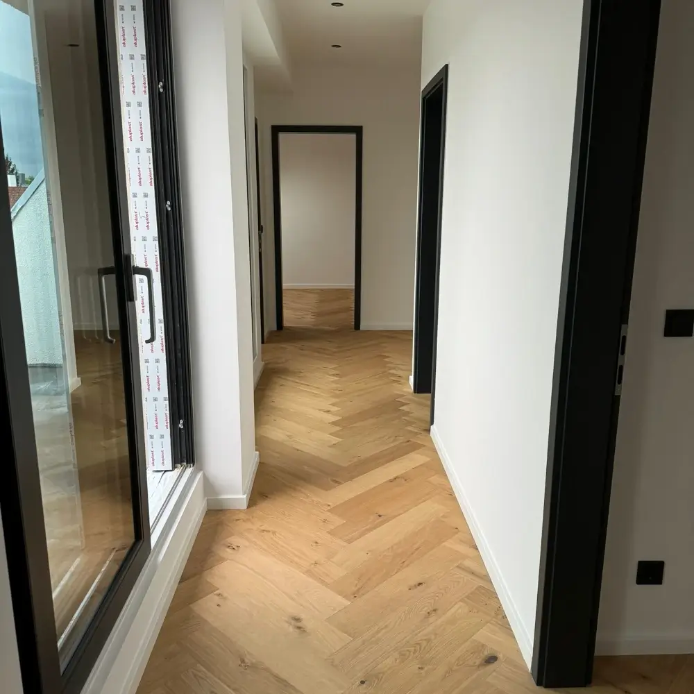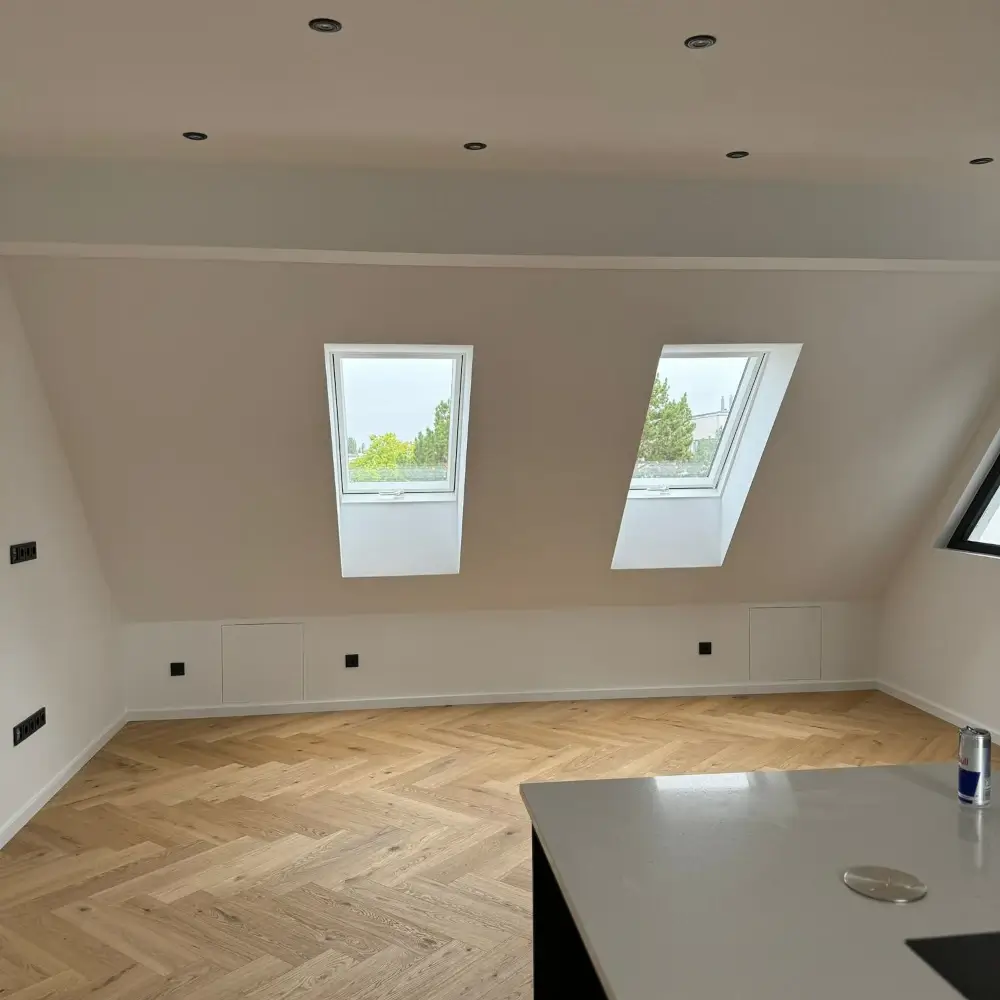 Öffnung einer tragenden Wand für einen modernen Wohn-/Essbereich.